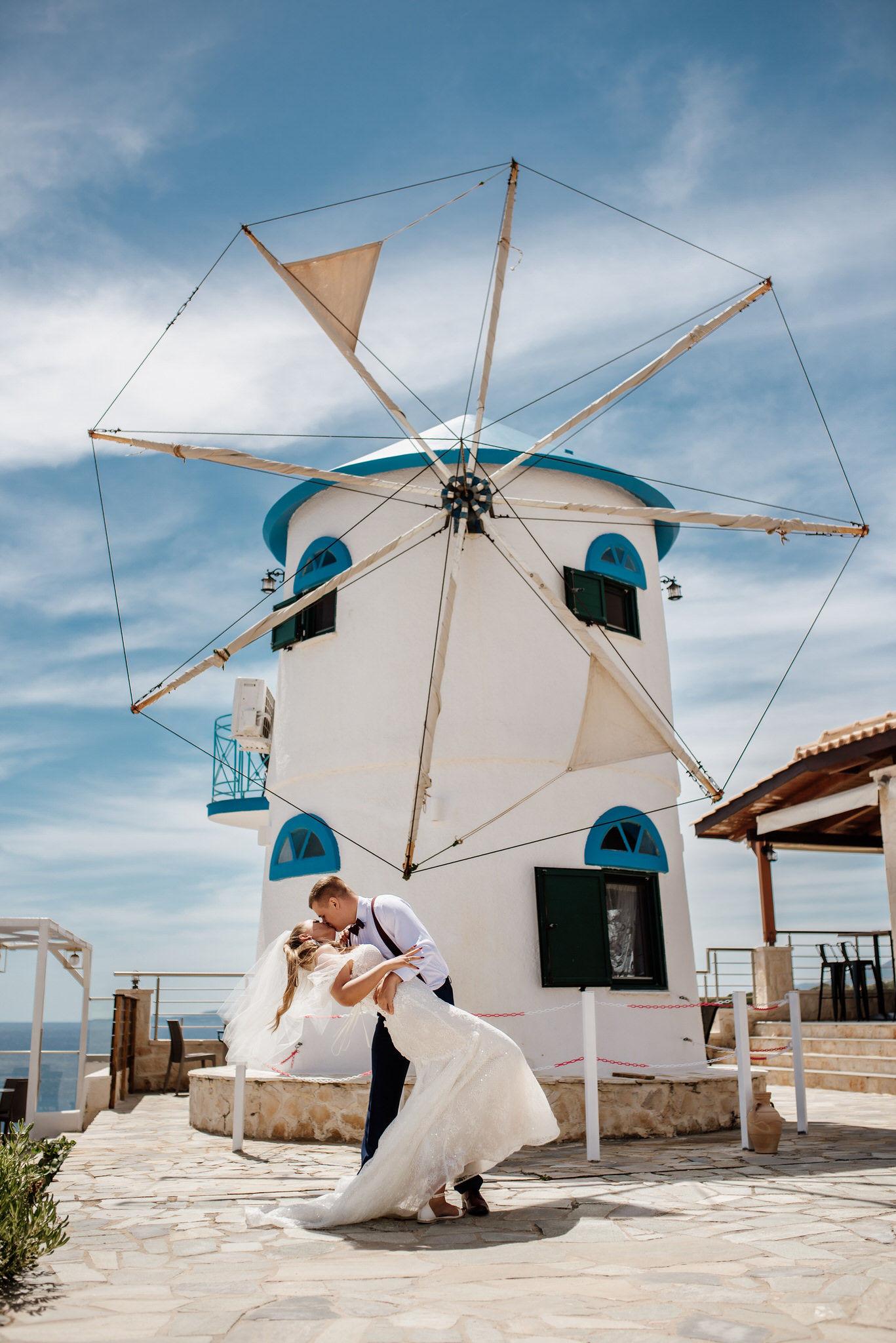 Po ceremonii Aleksandra i Kamil wybrali się na sesję zdjęciową do wiatraków w Skinari, na północnym krańcu Zakynthos. To miejsce oferuje zapierające dech w piersiach widoki, a wiatraki, które niegdyś stanowiły część lokalnego krajobrazu, stanowią teraz idealne tło dla romantycznych fotografii. Każde zdjęcie uchwycone w tym malowniczym zakątku wyspy jest jak obrazek z bajki – pełen emocji, spokoju i prawdziwego uczucia.