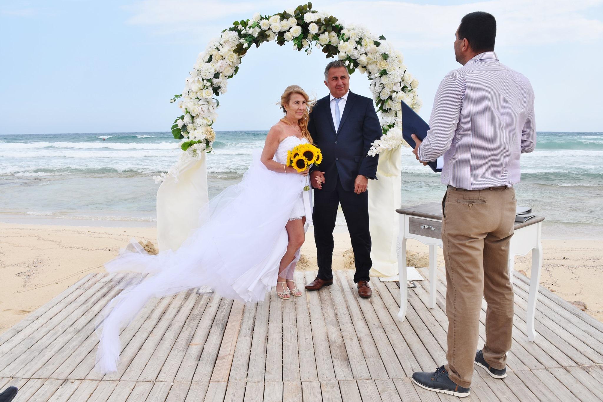 Ceremonia była prosta, ale pełna emocji. W ich spojrzeniach można było zobaczyć radość, wzruszenie i pewność, że właśnie tu, na cypryjskiej plaży, zaczynają swoją najpiękniejszą przygodę. Minimalistyczne dekoracje, szum morza i naturalne piękno otoczenia stworzyły idealną scenerię dla ich ślubu.