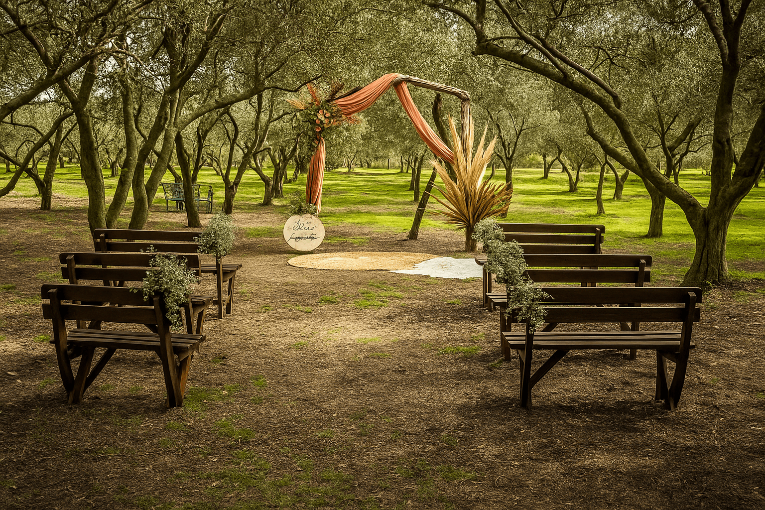 Jeśli kochacie styl rustykalny lub boho, to ślub na Kos w gaju oliwnym będzie spełnieniem marzeń. Ceremonia odbywa się w cieniu wieloletnich drzew, w otoczeniu ciszy, śpiewu ptaków i delikatnego szumu liści. To miejsce, które zapewnia pełną prywatność i wyjątkowy klimat – idealny do ślubnej przysięgi oraz romantycznej sesji zdjęciowej.