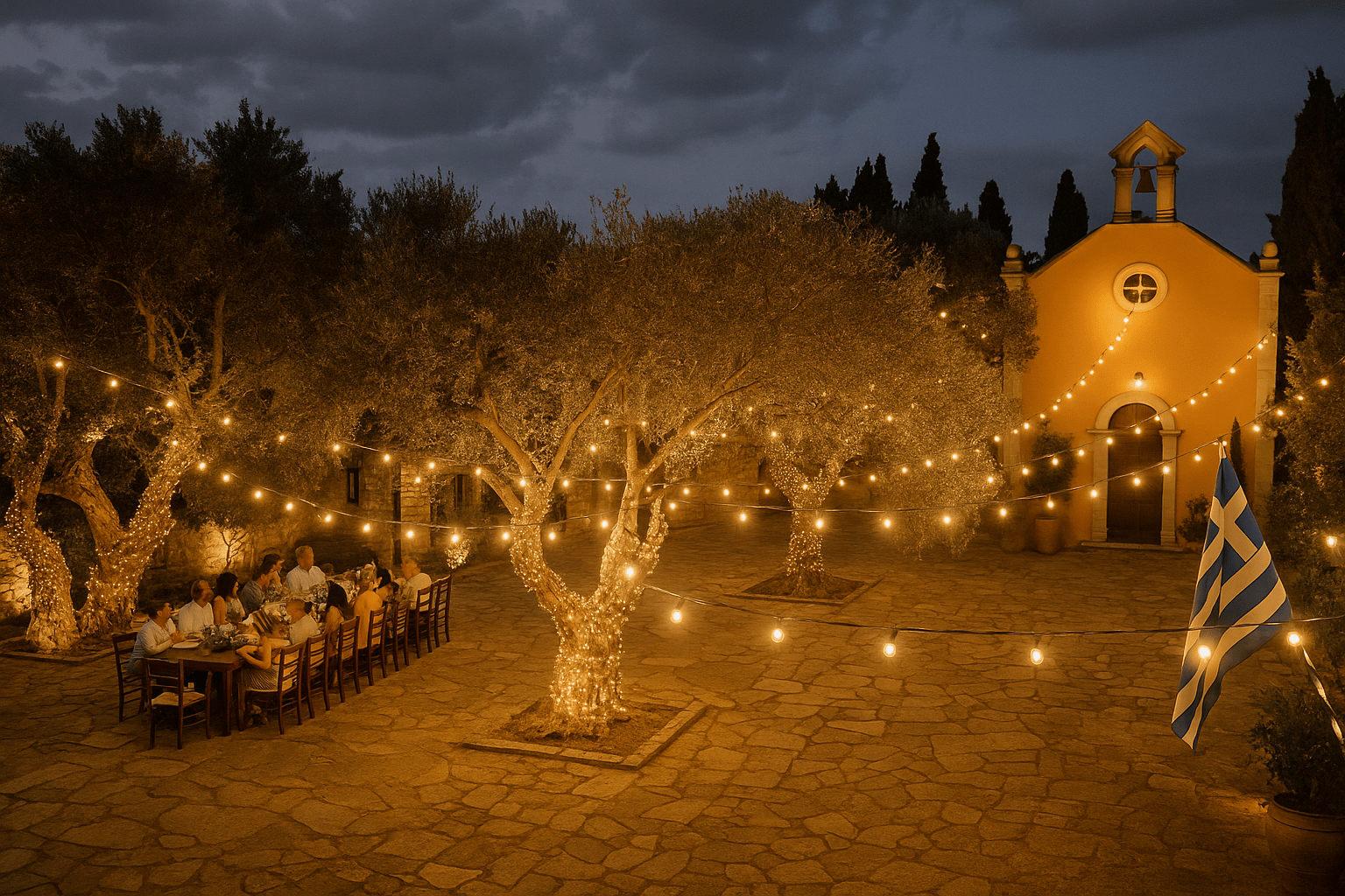 To prywatna przestrzeń, w której wszystko odbywa się w jednym miejscu – bez konieczności przemieszczania się. Greckie jedzenie, lokalne wina i niepowtarzalna atmosfera winiarni tworzą klimat swobodnej, ale eleganckiej uczty. Na życzenie wysyłamy szczegóły i propozycje aranżacji. To ślub w Grecji, który smakuje, pachnie i zapada w pamięć – tak, jak powinien smakować początek wspólnego życia.