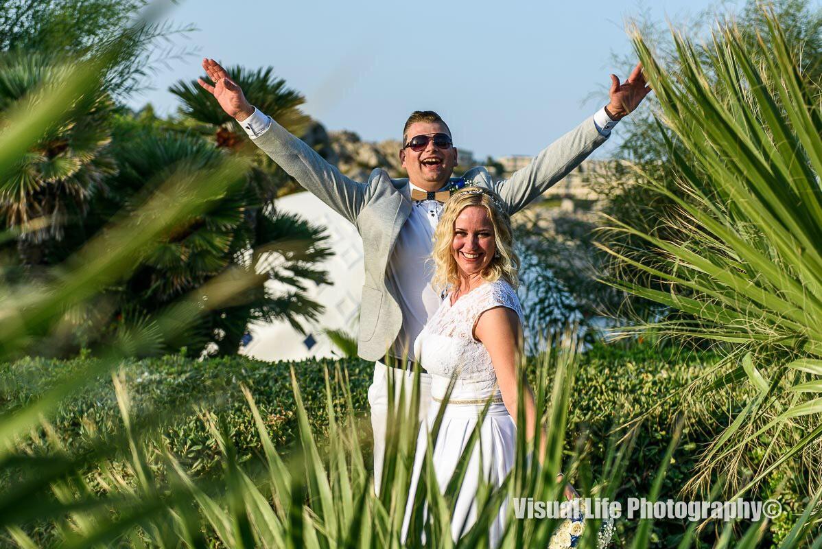Zachód słońca nad Morzem Egejskim, dźwięki tradycyjnej greckiej muzyki i szum fal rozbijających się o wybrzeże sprawiły, że ich ślub na Rodos był prawdziwie magicznym przeżyciem, które zapamiętają na zawsze.