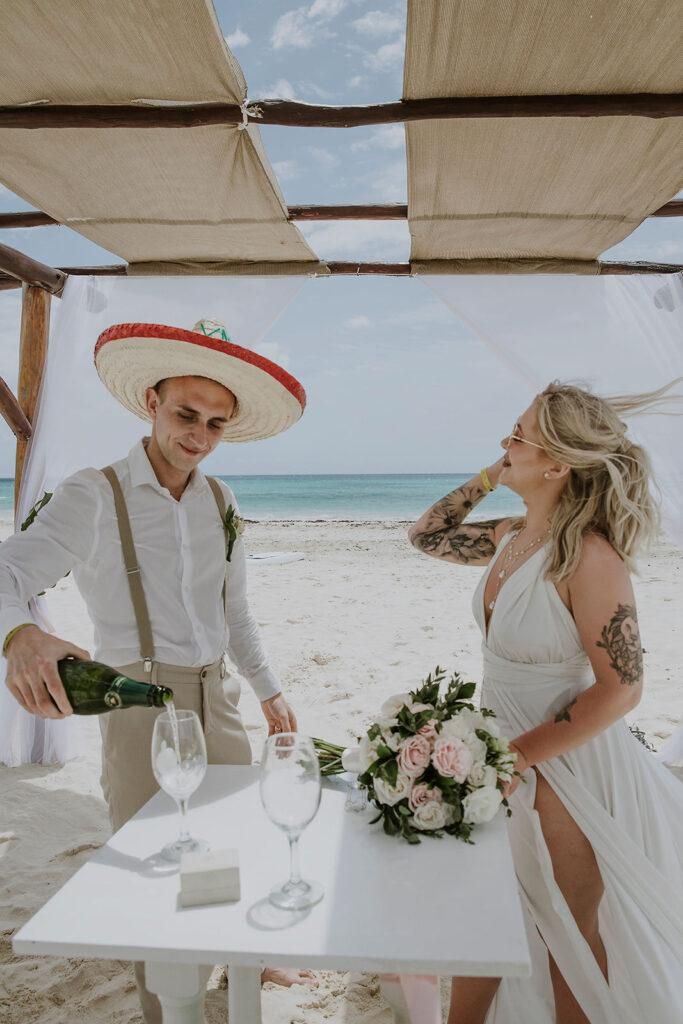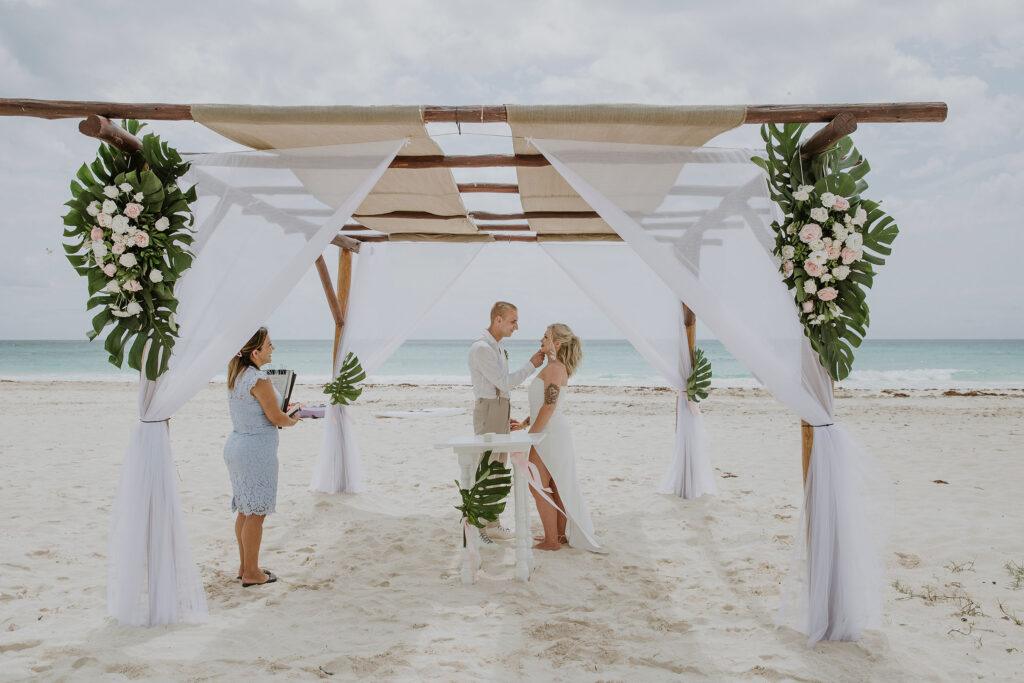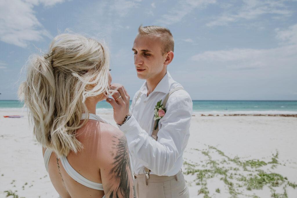 W dniu ślubu w Meksyku możecie liczyć na pełne wsparcie naszego koordynatora, który zadba o każdy szczegół ceremonii. Uroczystość odbywa się w pięknie udekorowanej altanie lub na plaży, gdzie Para Młoda składa przysięgę małżeńską w obecności świadków i bliskich. Po ceremonii ślubnej czeka Was wyjątkowe przyjęcie z widokiem na morze, sesja zdjęciowa oraz niezapomniane chwile w gronie najbliższych. Nasz pakiet ślubny obejmuje wszystkie elementy, które sprawią, że dzień ślubu w Meksyku będzie magiczny i pełen radości. Zapraszamy do kontaktu, aby poznać szczegóły pakietu ślubnego i spełnić marzenie o ślubie w Meksyku!